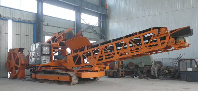 斗輪取料機,是指一種用于大型干散貨堆場的既能堆料又能取料的連續輸送的高效裝卸機械。由可俯仰和水平擺動的膠帶輸送臂及其前端的斗輪、機架、運行機構組成,膠帶可雙向運行,取料時由斗輪取料經輸送臂送出,堆料時則由主輸送機運來的貨物經由輸送臂投向堆場。